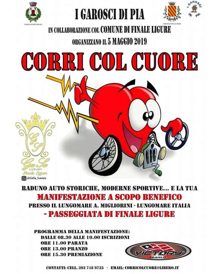 Finale Ligure. Domenica 5 Maggio dalle 08.00 alle 18.00 sulla passeggiata di Finale Ligure, si terrà Corri Col Cuore 2019.