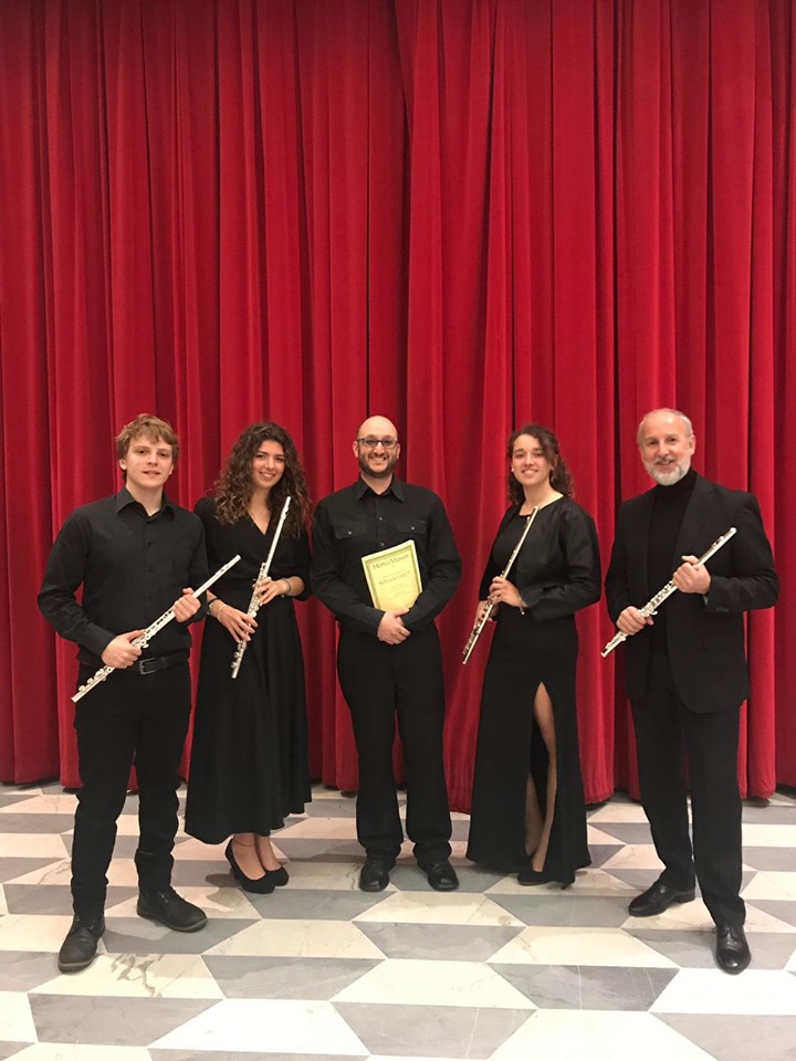 Dopo il grande successo dello scorso anno, l’Associazione Musicale Loanese ospita nuovamente il quartetto di flauti composto da Martina Carzoglio, Anita Rocca, Iacopo Ferro e Salvatore Scarlata. Il gruppo sarà accompagnato al pianoforte da Gianmaria Tosacano.