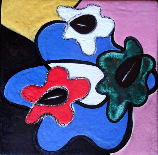 Ora torna ad Albissola consapevole che la ceramica può proporre il linguaggio delle sue esperienze, che attualmente, si intersecano con la scoperta di un suo mondo interiore. Da “Mosaici e calle Picasso” titolo della storica esposizione ad oggi, la sua creazione di ceramica di tasselli dai toni accesi ed evoluzioni futuriste, si plasma con uno stile più intimista.