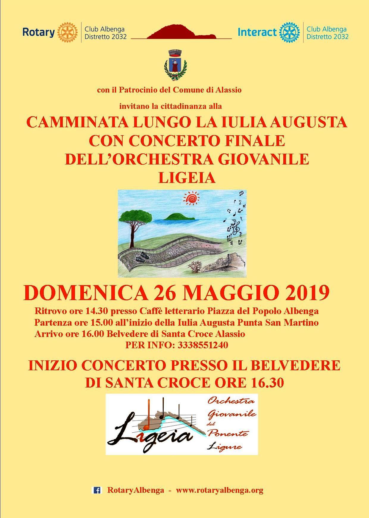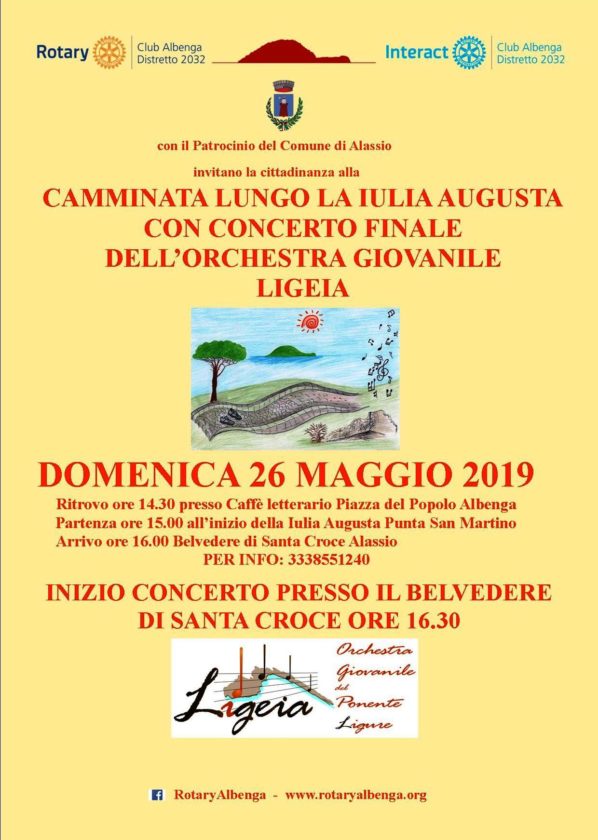 Alassio. Si chiuderà con un concerto sul Belvedere di Santa Croce la passeggiata archeologica sulla via Iulia Augusta organizzata per domenica 26 maggio, alle ore 16.30, dal Rotary Club di Albenga.