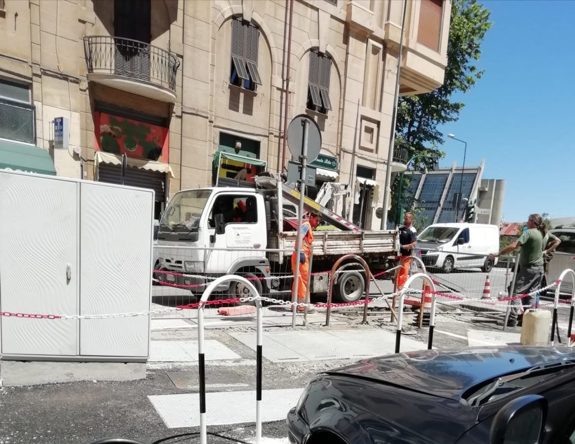 E’ esploso un tubo della fognatura, già in funzione da qualche mese dopo i lavori nella zona, alzando l’asfalto.