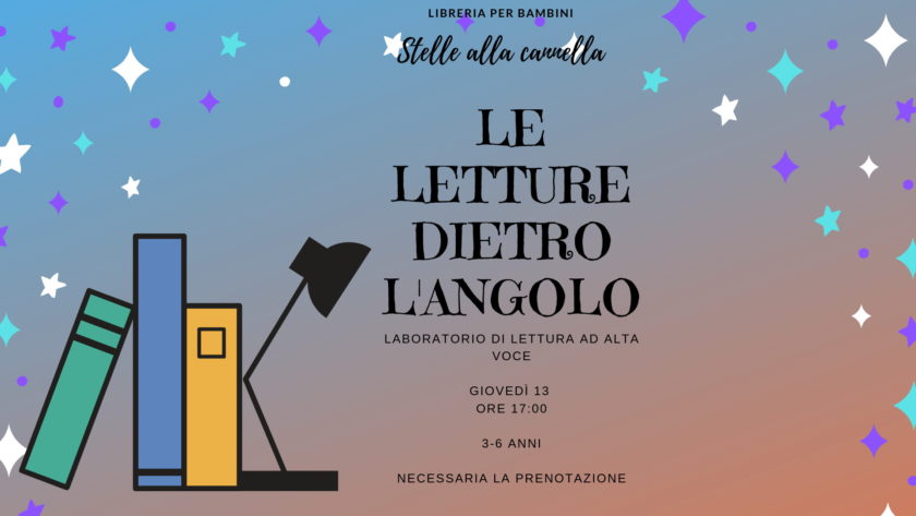 Giovedì 13 giugno ore 17.00: “Letture dietro l’angolo” – Laboratorio di lettura ad alta voce per bambini da 3 a 6 anni. Un’ora tutta dedicata alla lettura di tantissimi libri e albi illustrati!