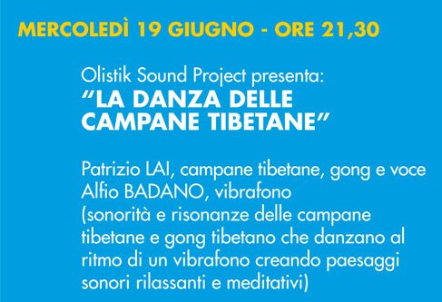 Patrizio Lai – ricercatore e insegnante yoga La serata del 19 giugno, organizzata in collaborazione con la “Olistik Sound Project” ci condurrà in una particolare atmosfera meditativa, con sonorità e immagini dedicate al benessere mentale e fisico, con uso di vari strumenti musicali ottimali per le pratiche yoga e per trattamenti olistici; il tutto presentato da Patrizio Lai eAlfio Badano.