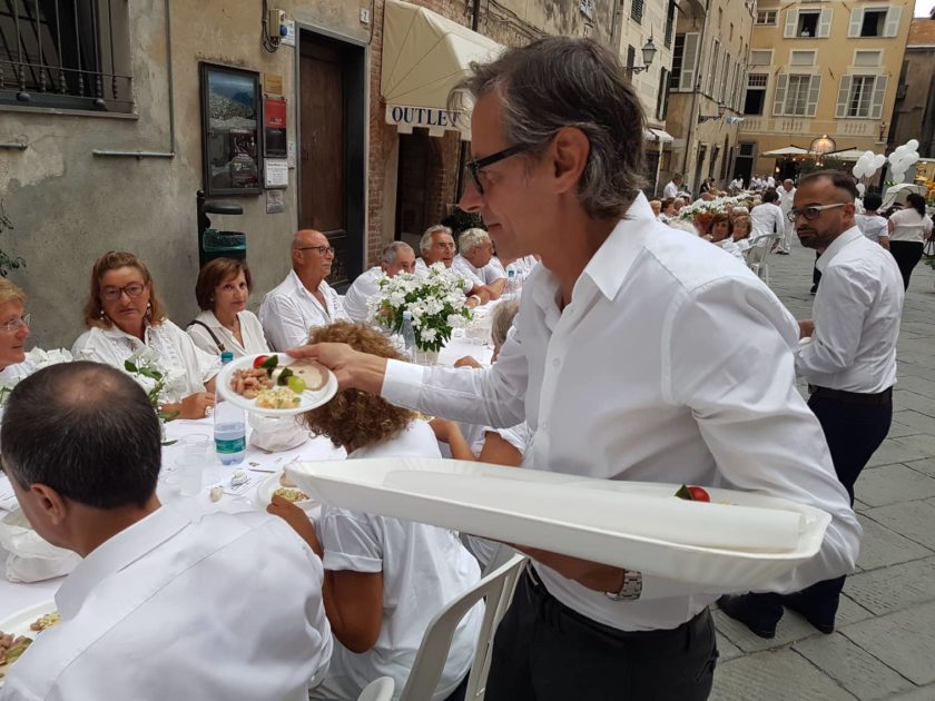 La cornice di Piazza San Michele ha reso l’atmosfera magica per tutti i partecipanti che, rigorosamente vestiti di bianco, hanno avuto modo di essere serviti da camerieri d’eccezione: i consiglieri comunali di maggioranza e minoranza, gli assessori e dal Sindaco Riccardo Tomatis tutti uniti per uno scopo benefico, raccogliere fondi per la Croce Bianca di Albenga.