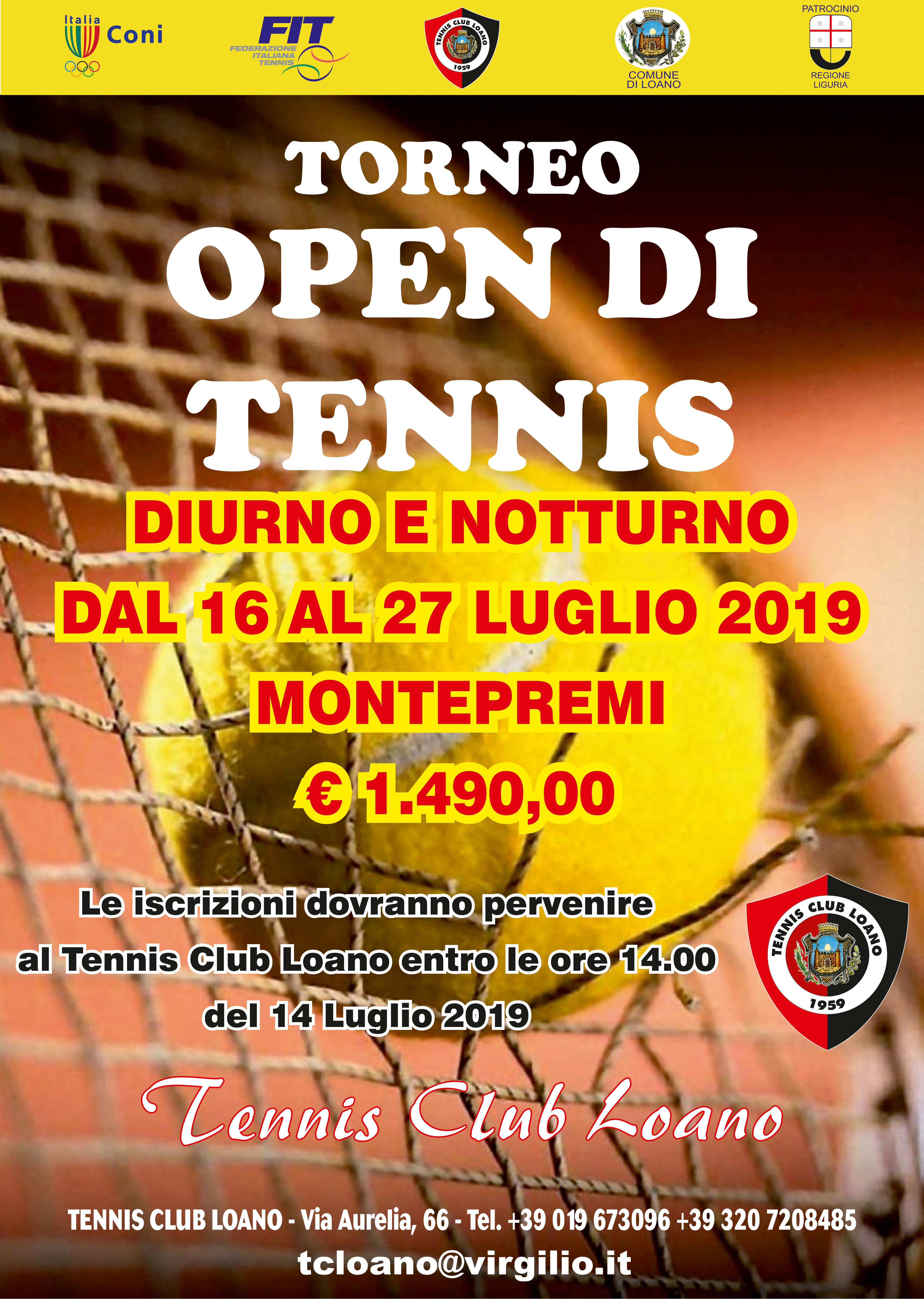 Loano. Dal 16 al 27 luglio prossimi al Tennis Club Loano si svolgerà un torneo open in orario diurno e notturno, con un montepremi di 1.490 euro.