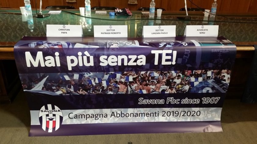 Zefiro torna e ‘l bel tempo rimena, il vento che spazza le nubi e riporta il sereno. La metafora petrarchesca è calzante per significare la cifra della svolta vissuta dal club biancoblu che dopo anni di anonimato e sofferenze potrebbe tornare a respirare aria pulita. Si riparte, certo, dalla D ma con un carico di entusiasmo e ambizioni ormai sconosciuti da tempo. L’impatto ufficiale della nuova proprietà targata Milano con la nuova realtà si è consumata tra applausi, speranze e voglia di riemergere alla presenza della Sindaco Ilaria Caprioglio e dell’assessore allo sport Maurizio Scaramuzza. Roberto Patrassi, Stefano Eranio, Christian Papa e l’avvocato Fabio Sergi, ognuno con precisi compiti e competenze hanno descritto in parte quello che sarà il nuovo corso del Savona che partirà ufficialmente venerdì con il ritiro di Champoluc. Ancora, ma per poco, top secret i nomi dei nuovi giocatori e del tecnico che verrà ufficializzato a breve, quello che contava oggi era mettere “nero su bianco” e ripartire. Roberto Patrassi esordisce: “Lavoreremo a 360 gradi, a partire dal settore giovanile, che deve essere un punto di partenza per poter raggiungere determinati obiettivi. Savona deve tornare ad essere capoluogo di provincia, non Albisola, se altre squadre del territorio saliranno e io resterò indietro vuol dire che ho lavorato male”. Il primo step è creare una sinergia con associazioni e istituzioni locali come il Campus :”La squadra di calcio è di Savona, dall’università alle associazioni della città. Vogliamo tanta gente allo stadio perchè con cinquanta persone allo stadio non si va da nessuna parte”. Arriva la prima notizia: “Stefano Eranio sarà il responsabile del settore giovanile mentre Christian Papa il responsabile di tutta l’attività agonistica, dovrà riportare la squadra in C“, proprio Christian Papa è il vero cavallo di ritorno a Savona dopo tre anni, :”Non nego di aver dato un input importante a questa operazione, mi sento legato a questa piazza, anche se non avrei mai pensato di tornare a Savona in Serie D. Ci stiamo massacrando per poter costruire una squadra in quattro giorni, pur non potendo ancora contrattualizzare alcun giocatore. Venerdì spero vengano messe le ultime firme. Voglio fare 2000 abbonamenti”.