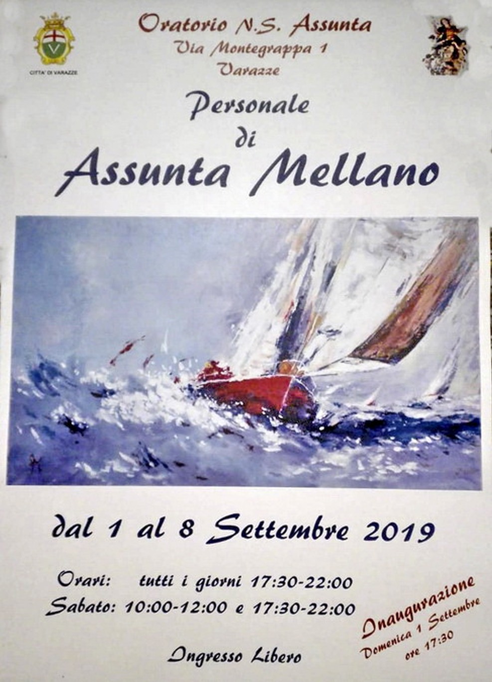 Domenica 1 settembre 2019 alle ore 17:30 a Varazze, nell’Oratorio di Nostra Signora Assunta, Via Montegrappa n.1, si terrà l’inaugurazione della mostra personale della pittrice cuneese.