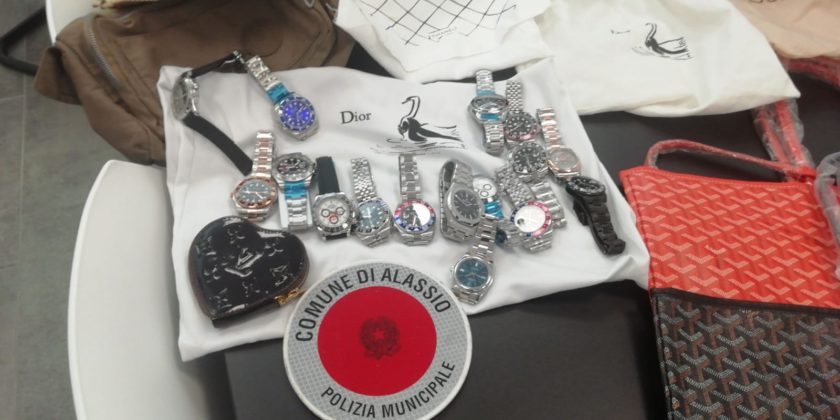 Alassio. Dall’inizio della stagione sono decine le attività di sequestro compiute dalla Polizia Municipale di Alassio sia di carattere amministrativo, rispetto al commercio abusivo, sia penale per chi colto a vendere merci contraffatte.