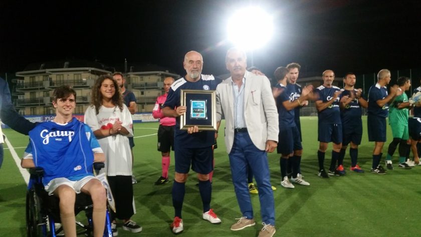 Marco, prima del fischio d’inizio ha ricevuto in dono una targa consegnata dal vicepresidente del Vado, Aragno, di cui il ragazzo è stato calciatore e un ricordo dell’evento ricevuto dalle mani del Presidente della LND Liguria, Giulio Ivaldi.