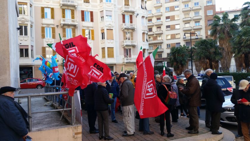 Presidio dei pensionati questa mattina in Piazza Saffi a Savona per chiedere una legge nazionale sulla non autosufficienza, un sistema di rivalutazione equo che tuteli il potere di acquisto delle pensioni, l’allargamento della platea dei beneficiari della 14esima, la separazione della previdenza dall’assistenza, il taglio delle tasse anche per i pensionati, un adeguato finanziamento del Servizio Sanitario nazionale, un paniere Istat più rappresentativo dei consumi specifici delle persone anziane. Dopo le iniziative territoriali e tre manifestazioni nazionali a Roma nel corso del 2019 (9 febbraio, 1° giugno e 16 novembre), la mobilitazione prosegue con presidi davanti a tutte le prefetture del paese (in Liguria dopo Savona si terranno ad Imperia il 13 dicembre ed a Genova e Spezia il 19 dicembre) e davanti al Parlamento con quattro giornate di presidio durante la discussione della legge di Bilancio.