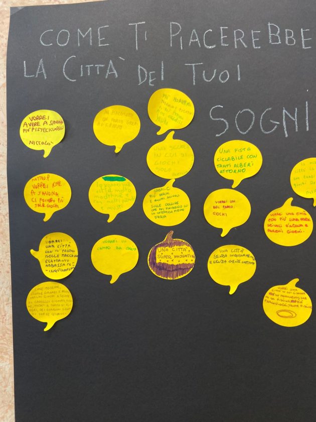 Due classi di bambini di 10 anni, armati di occhialini colorati, matite ed entusiasmo hanno provato a riflettere rispondendo alla domanda “Come ti piacerebbe la città dei tuoi sogni?”