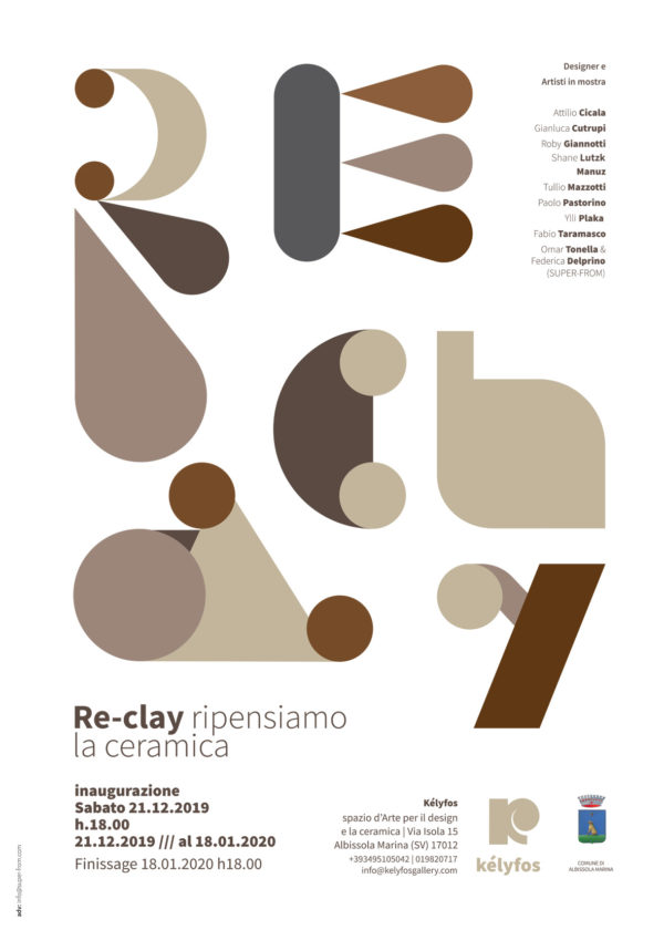 Il titolo della mostra di esordio, “Re-Clay ripensiamo la ceramica”, come appare nella splendida locandina disegnata da Omar Tonella e Federica Delprino che curano anche la parte di comunicazione social dell’evento, è la prima testimonianza concreta di questo spirito creativo: mette assieme un prestigioso gruppo di designers ed artisti gravitanti nel distretto ceramico ligure delle Albisole, Savona e Celle ligure con storie ed esperienze diverse ma accomunati da freschezza e assoluta libertà creativa. Ed eccoli, in ordine alfabetico, i protagonisti di Re-Clay: