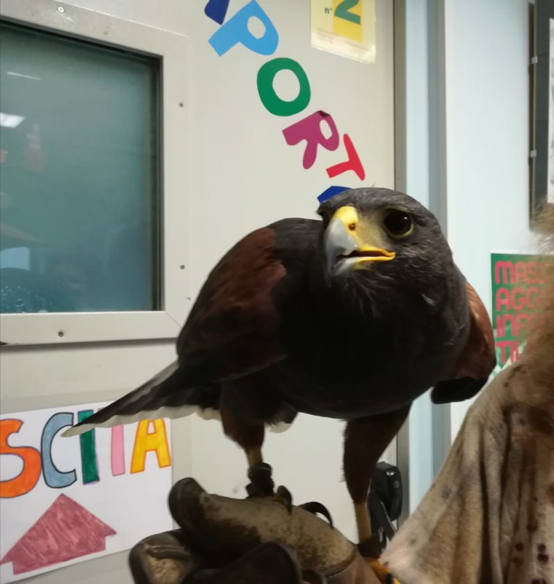 Presente, inoltre tra i bambini, anche il falco Isabeau.