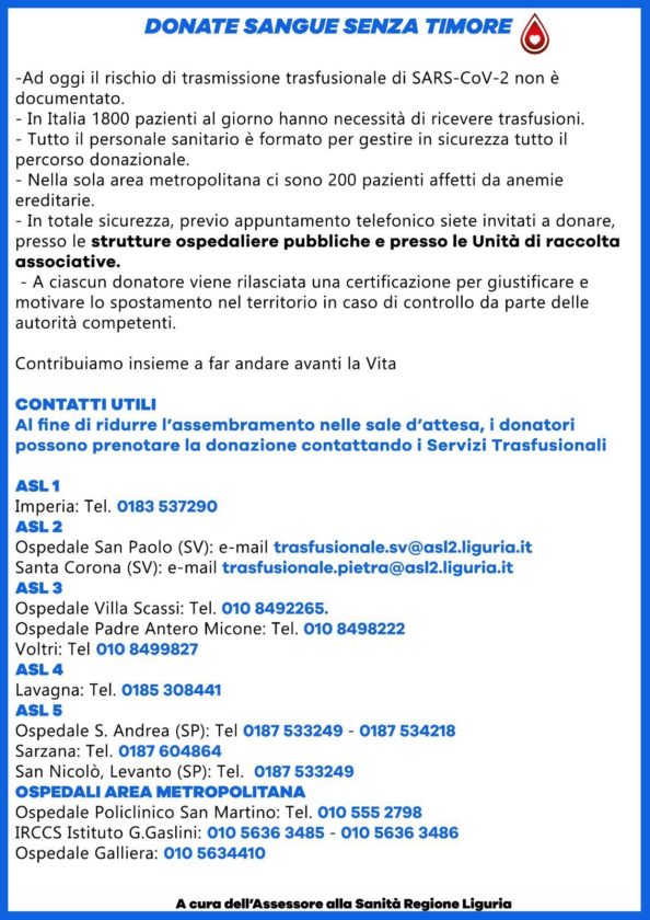 Non ci sono rischi per il donatore a recarsi nelle sedi di raccolta all’interno degli ospedali o nelle unità associative. Il tema delle donazioni di sangue in questi giorni riguarda le tante strutture sanitarie alle prese con un calo dovuto ai timori per l’epidemia di coronavirus. “Donate sangue senza timore” è il messaggio lanciato dall’assessorato regionale alla Sanità per sensibilizzare le persone su un tema delicato e di stretta attualità.
