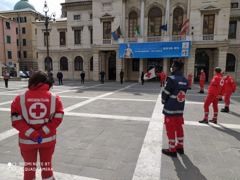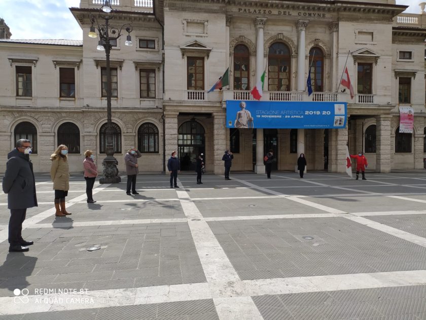 Le immagini di Savona dove la Giunta Comunale si è riunita in cerchio insieme ai volontari della Croce Rossa in Piazza Sisto IV. Analoghe commemorazioni si sono svolte in tutti i comuni della Provincia di Savona.