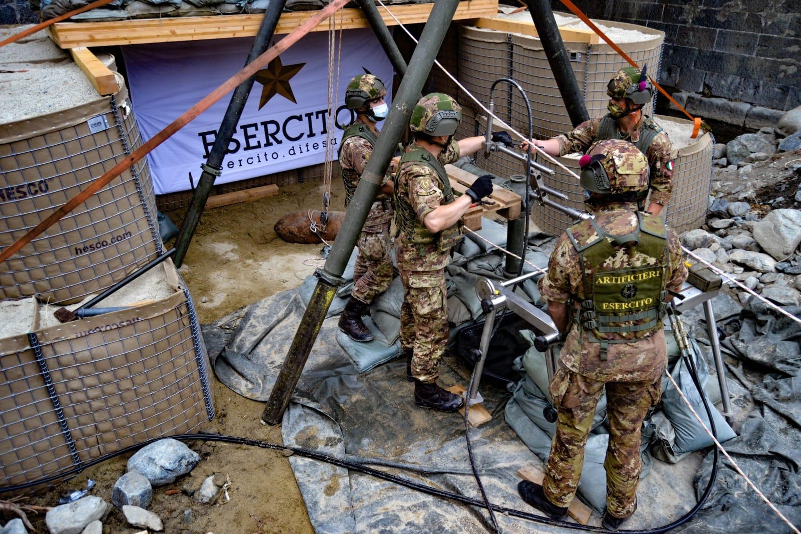 Nelle prime ore del pomeriggio, l’ordigno reso inerte e sezionato in più parti, è stato trasferito, a cura dello stesso reparto specialistico dell’Esercito, presso una cava sita in Val Varenna e neutralizzato mediante combustione.