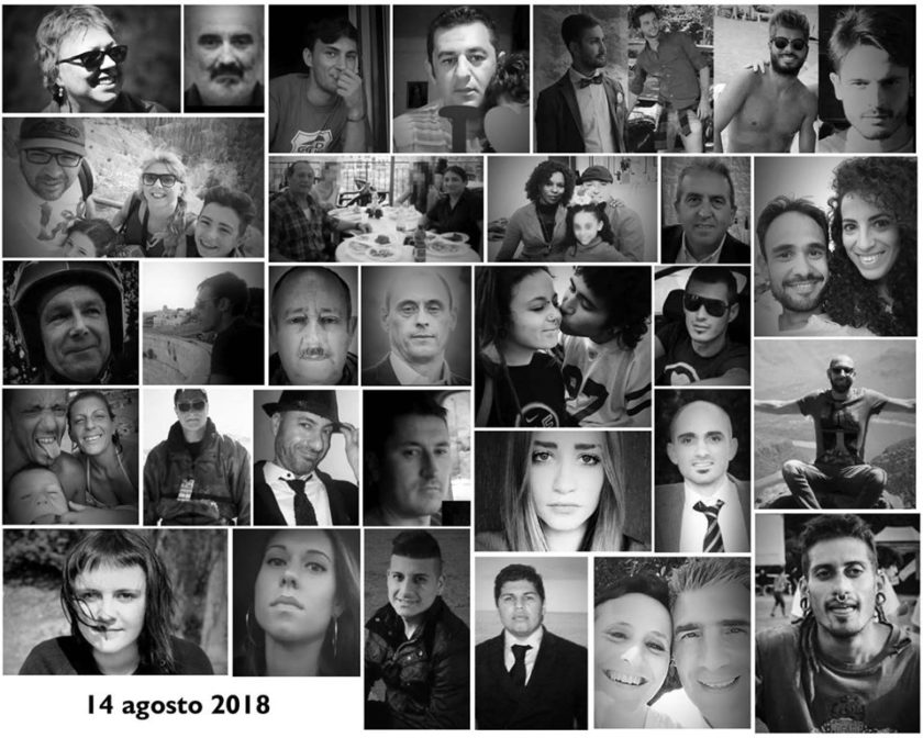 La giornata è stata aperta con la Messa nella Parrocchia di Certosa in suffragio per i 43 morti di cui sono stati letti i nomi celebrata dal nuovo Arcivescovo di Genova, Mons. Marco Tasca: ” Signore, aiutaci a trovare un senso a tutto questo, aiutaci a trovare un senso a quello che è accaduto”, ha detto durante l’omelia. Con un minuto di silenzio alle 11.36, sottolineato dalle sirene dei porti di Genova e Savona e dalle campane della città, Genova e la Liguria si sono fermate per ricordare i 43 morti.