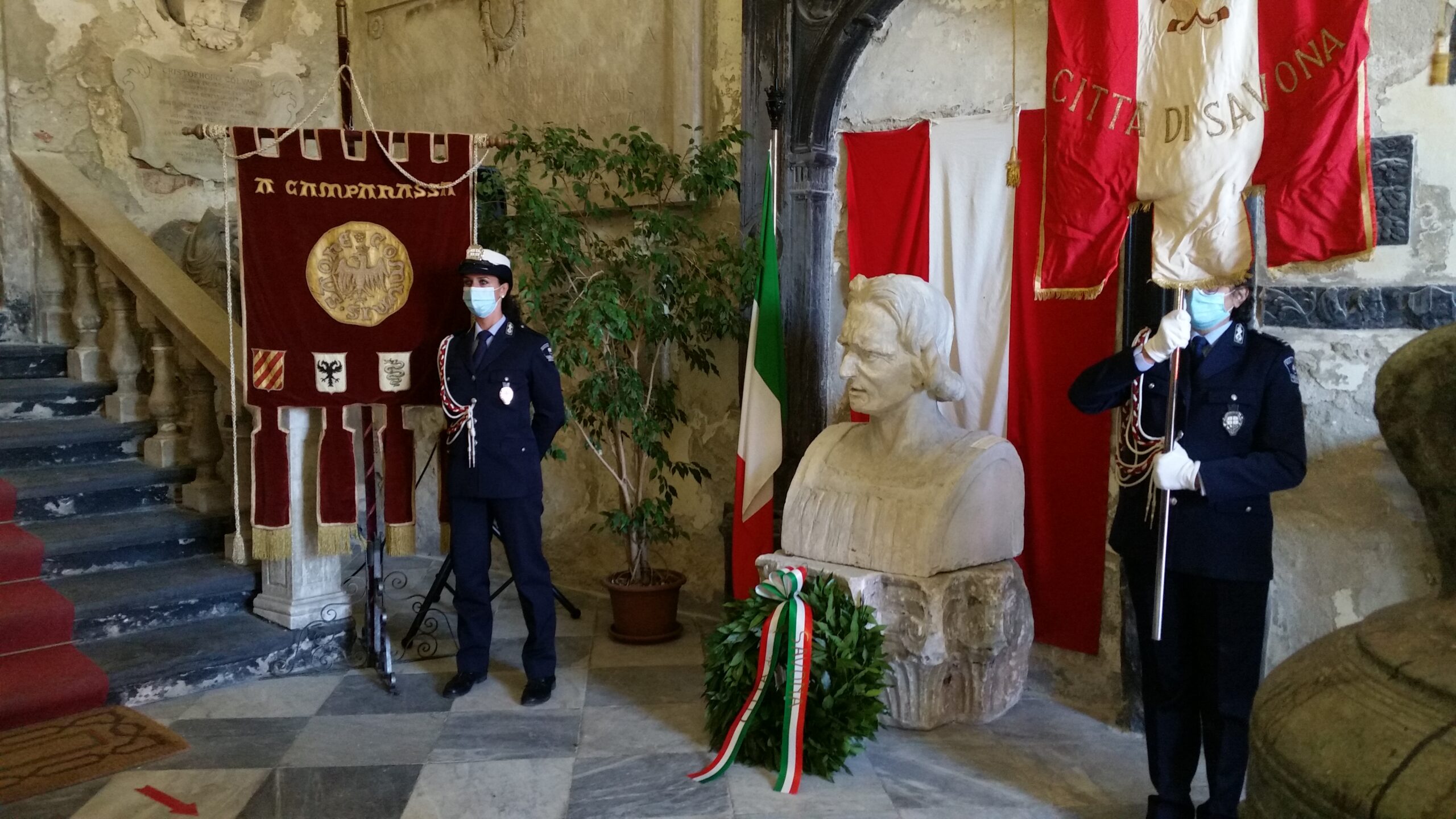 Una ricorrenza in sordina a causa dell’emergenza COVID-19 che ha ridotto il programma delle celebrazioni del 12 ottobre in ricordo della scoperta dell’Amercia, quella voluta dall’associazione “A Campanassa” che ha ricordato l’impresa di Cristoforo Colombo con una breve e sobria cerimonia all’interno dell’atrio del complesso monumentale del Brandale a Savona. Negli scorsi anni, tramite l’associazione A Campanassa, le città di Savona e Genova sono state unite nell’indicare ai giovani il messaggio di Cristoforo Colombo, figura che accomuna le due città, almeno idealmente, per mezzo del “ponte”, rappresentato dalle celebrazioni colombiane, con spirito di solidarietà e amicizia. Savona e Genova hanno celebrato Cristoforo Colombo, soprattutto nel gemellaggio tra studenti appartenenti alle scuole delle due città.