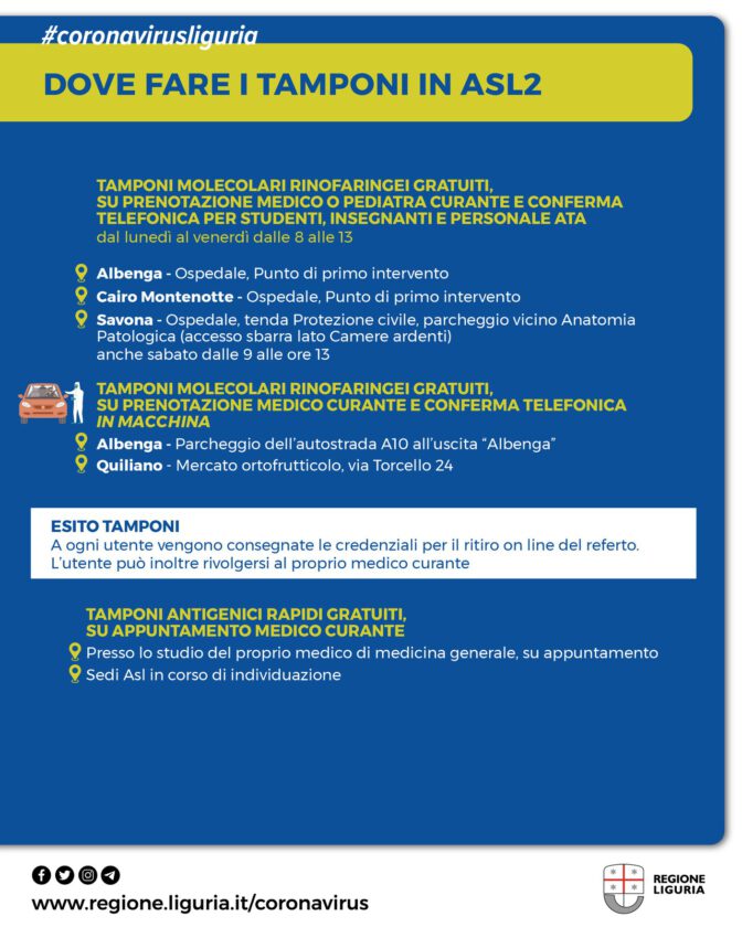 L’ambulatorio Scuola di 𝐒𝐚𝐯𝐨𝐧𝐚 per tamponi molecolari rinofaringei si sposta, sempre all’interno dell’Ospedale, tenda della Protezione civile, presso il parcheggio vicino alla palazzina dell’Anatomia Patologica (accesso sbarra lato Camere ardenti).