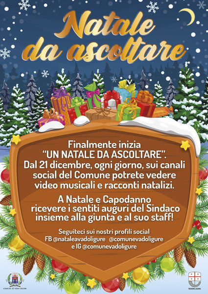 Nell’ambito della manifestazione “Natale a Vado Ligure”, già in programma con le luminarie e video proiezioni, oggi, lunedì 21 dicembre, sui canali Facebook e Instagram del comune di Vado Ligure, inizierà e debutterà “Natale da ascoltare”.