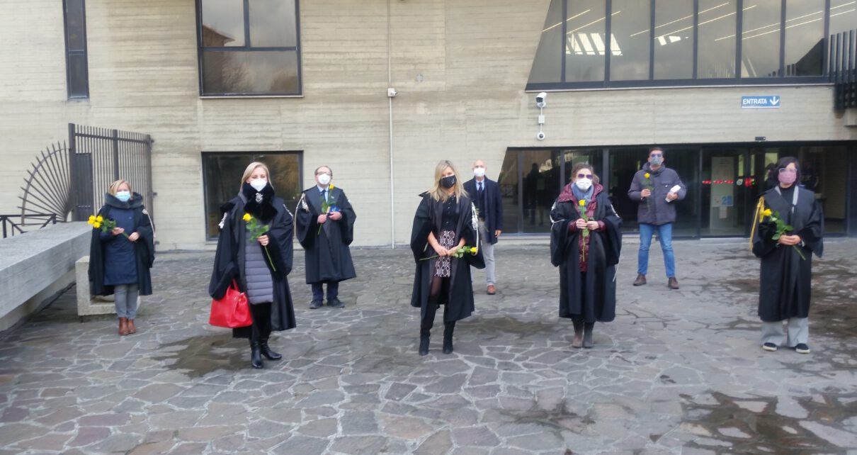 Una rappresentanza dei giudici di Pace (GdP), giudici onorari di tribunale (GOT) e vice procuratori onorari (VPO), con una rosa gialla e un codice tra le mani, ha manifestato questa mattina anche a Savona con un flash mob la protesta contro le parole del ministro della Giustizia, Alfonso Bonafede che rispondendo ad un’interrogazione, ha detto: “La magistratura onoraria ha la finalità di contenere il numero dei togati, pena la perdita di prestigio e la riduzione delle retribuzioni della magistratura professionale”. “Una situazione “indecorosa” per i magistrati onorari” hanno affermato gli organizzatori del flashmob.