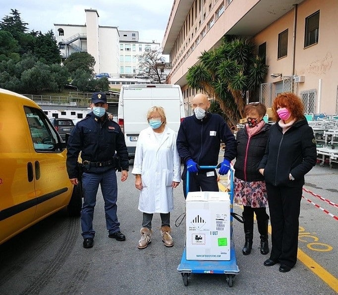 Sono arrivati questa mattina al San Paolo di Savona i vaccini anti COVID-19 con cui proseguire la somministrazione alle persone a partire da domani. Sono arrivati scortati da un’auto della Polizia. Si tratta di 2925 vaccini collocati in 16 contenitori.