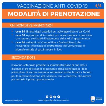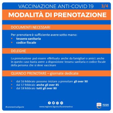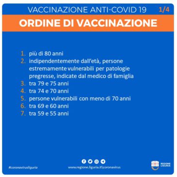 Prosegue la campagna vaccinale rivolta agli over 80, che prevede la somministrazione del vaccino anti Covid ad oltre 160 mila liguri.