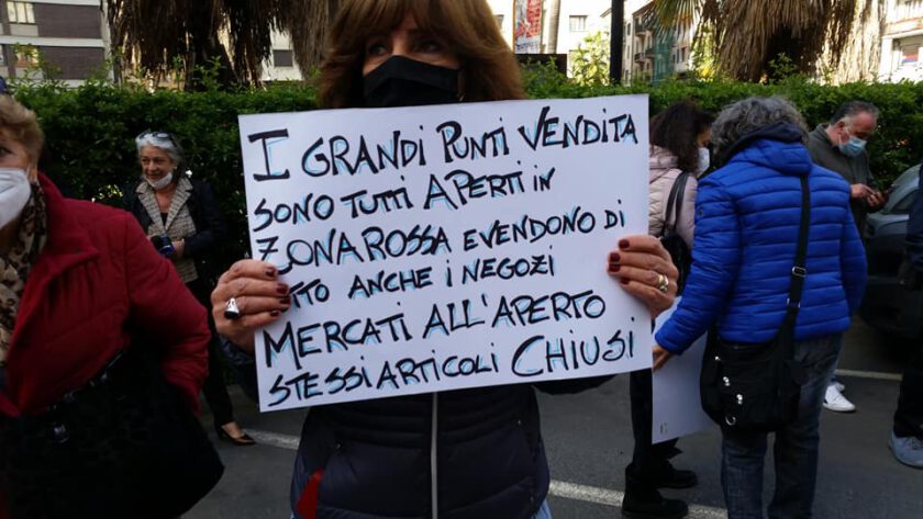 Una carovana di 50 furgoni di ambulanti provenienti dalle province di Savona e Imperia hanno sfilato attraversando la città prima del raduno sotto la Prefettura. Da Corso Svizzera, il corteo ha attraversato via Stalingrado, via Braja, corso Tardy e Benech, corso Mazzini, via Giacchero, via Niella, piazza Mameli, via Cesare Battisti, via Pertinace, piazza Diaz e via Dei Mille. E’ stata la mattina della protesta in piazza che, dopo aver toccato Imperia nei giorni scorsi è arrivata anche nel capoluogo savonese che si trova, insieme a tutta la provincia e al resto del Ponente in zona rossa almeno fino all’11 aprile. “Vogliamo lavorare” è stato lo slogan che è stato più volte ripetuto dai circa 100 manifestanti che hanno chiesto la riapertura dei mercati anche in zona rossa. “Dietro ogni ambulante c’è una famiglia” è scritto in uno dei cartelli. Una rappresentanza della categoria è stata ricevuta alle 10.30 dal Prefetto. “Se verrà prolungata la zona rossa la prossima settimana andremo ad occupare i nostri posti sul mercato, non venderemo perché non ci è concesso ma faremo le vendite a domicilio come la grande distribuzione”, ha annunciato uno dei manifestanti.