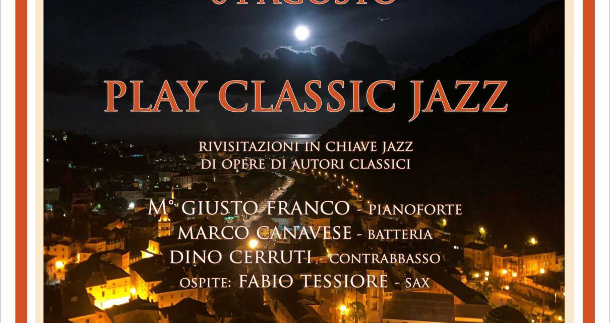 Il maestro Giusto Franco è senza dubbio quello che si può definire un artista eclettico: le sue radici sono classiche (diplomato in pianoforte e composizione al Conservatorio Paganini di Genova), ma con questo Trio si esprime ottimamente in chiave jazz con eccellenti arrangiamenti in versione swingata. Il M° Giusto Franco al pianoforte, in questa occasione è accompagnato dai docenti dell’Accademia Musicale del Finale: M° Marco Canavese alla batteria, M° Dino Cerruti al contrabbasso e con la partecipazione del M° Fabio Tessiore al sax. Verranno eseguite celeberrime composizioni classiche (Liszt, Mozart, Brahms, Beethoven, Chopin) interpretate in chiave “jazzata” insieme a famosi standard jazz e a brani originali di composizione del maestro stesso.