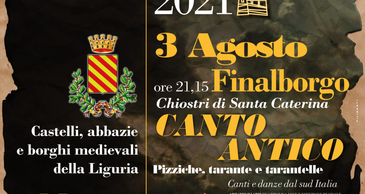 Il piccolo abitato di origine medioevale di Finalborgo, uno dei borghi più belli d’Italia, sviluppato nell’entroterra finalese, vedrà protagonista Canto Antico, ensemble impegnato in uno dei concerti della rassegna “Musica dei Castelli di Liguria”, sostenuto dal comune di Finale Ligure, con la collaborazione artistica dell’Associazione Musicale Corelli di Savona.