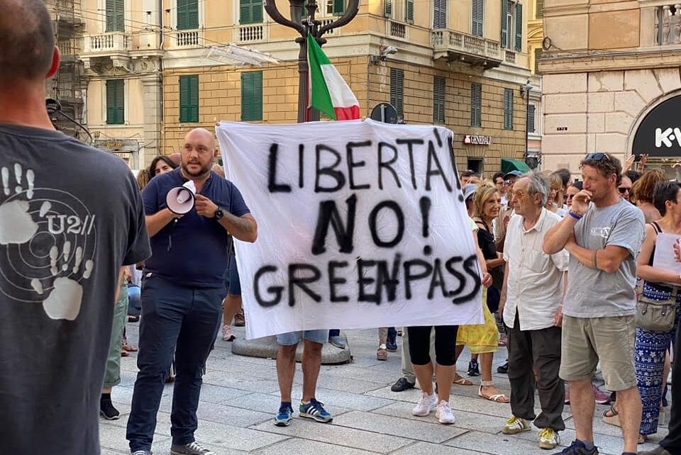 Prosegue la protesta dei “No Green Pass” a Genova così come in altre città italiane. Oggi il corteo, partito dal centro ha raggiunto il quartiere di San Fruttuoso e da lì Piazza Della Vittoria creando disagi agli automobilisti. Il corteo, composto da circa 500 persone ha esposto striscioni e lanciato slogan contro il Premier Draghi e il Governo: “No Draghi, no pass, no Cts – il popolo e la democrazia trionferanno”.