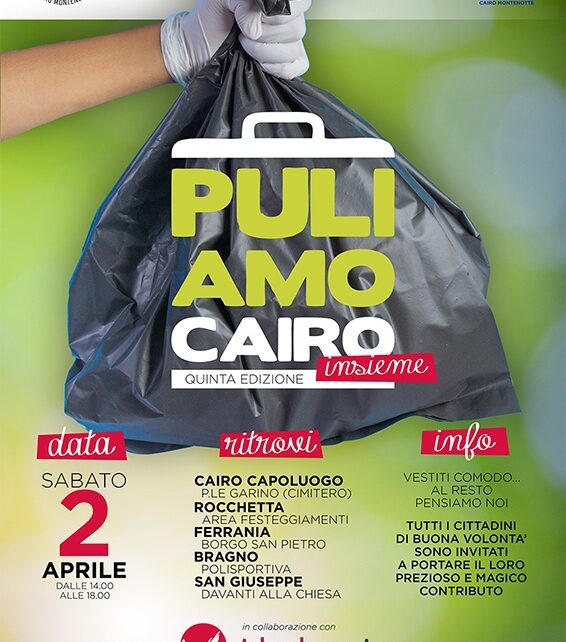 La Consulta Giovanile, in collaborazione con il Comune di Cairo Montenotte, la Protezione Civile e la ditta IdealService, organizza, nella giornata di sabato 2 aprile, l’iniziativa “puliAMO Cairo”.