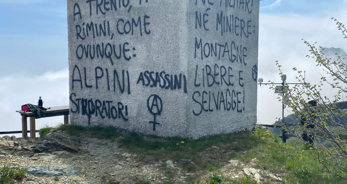 Episodio di vandalismo sul Monte Beigua, dove sono comparse scritte offensive e diffamatorie nei confronti degli Alpini. La denuncia arriva dalla pagina Facebook Beigua Insane Tribù. Come si vede dall’immagine. L’episodio che ha scatenato le polemiche a livello nazionale somno le testimonianze di alcune donne che sarebbero state oggetto di attenzioni troppo audaci da parte di alcuni presunti alpini.