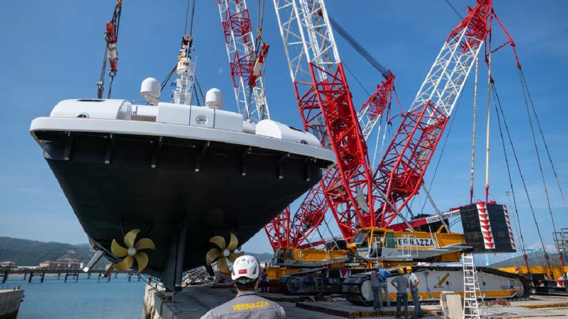 Costruito dall’azienda vadese Eurocraft, il primo dei superyachts da 45 m di lunghezza è stato varato ieri con una complessa operazione che ha visto all’ opera due maxigru del gruppo Vernazza, capaci di sollevare le 400 tonnellate del panfilo. Lo scafo è stato sollevato da due mezzi, uno cingolato ed uno stabilizzato che lo hanno prima spostato e quindi varato presso la darsena pubblica.
