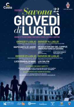 I Giovedì di luglio sono una costola di Savona Estate 2022', rassegna che unisce più generi artistici – lirica, musica, teatro, immagine visiva, letteratura e intrattenimento, promossa dall’amministrazione comunale con