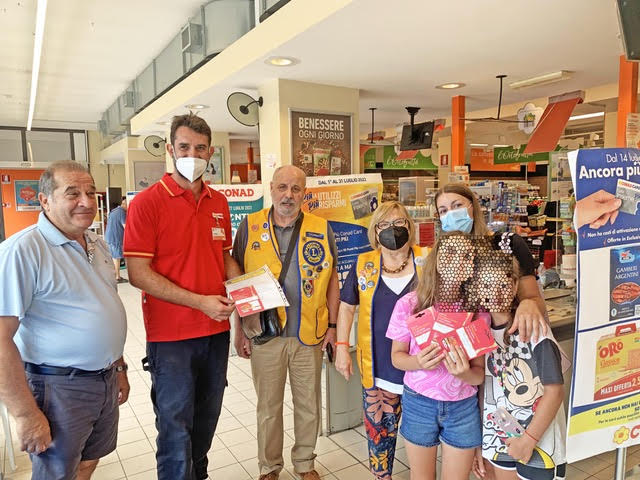 Nella foto il momento della consegna da parte del responsabile Conad di Albissola Marina al segretario dei Lions Anna Geralli (delegata dal Distretto Lions) alla presenza di Mario Mazzini (Officer Distrettuale) e il successivo passaggio diretto a Sandra e alle sue sorelle. Il momento è stato molto coinvolgente.