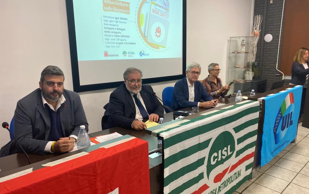 A livello nazionale nel 2022 sono stati registrati seicento morti e quattrocentomila infortuni sul lavoro, con il 77% di irregolarità aziendali. A fronte di questi che non sono solo numeri ma persone, Cgil Cisl Uil hanno deciso di organizzare una settimana di mobilitazione e assemblee che culminerà nella manifestazione di sabato 22 ottobre a Roma. A Genova la riunione organizzata da Cgil Cisl Uil ha visto la partecipazione di oltre 100 delegate e delegati dai luoghi di lavoro. L’introduzione della mattinata è stata affidata a Igor Magni Segretario Generale Camera del Lavoro di Genova. Ha moderato l’incontro Fabio Servidei Segretario Confederale Uil Liguria. Ha chiuso i lavori Angelo Colombini Segretario Nazionale Cisl.