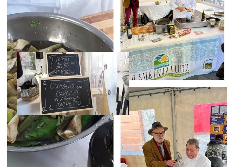 Ieri, giorno conclusivo della prima edizione della Fiera di San Martino di Albenga, tra un numeroso pubblico di visitatori si è tenuto il Cooking Show dello Chef Renato Grasso. Il Maestro di cucina originario di Mendatica ha preparato un coniglio ai carciofi di Albenga, e il machetto, salsa tradizionale ligure a base di acciughe, aglio e olio extravergine di oliva, servita su crostini di pane. Nell’esecuzione della ricetta, lo chef ha utilizzato prodotti tipici del territorio, presenti anche in vendita nei vari stand della fiera, ove era presente anche il tartufo prodotto nell’entroterra ligure, nelle sue due varianti bianca e nera.
