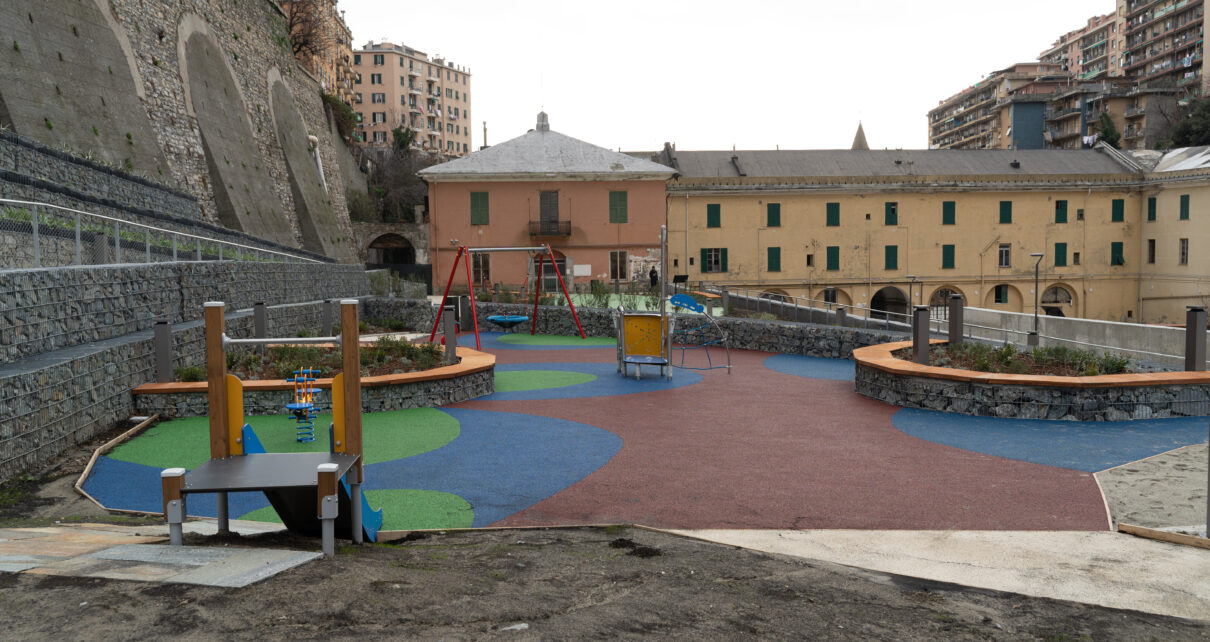 Un’area giochi attrezzata, campi da basket e pallavolo, zona pic-nic, un ascensore di collegamento panoramico, e le “Nature Based Solution”, ovvero opere finalizzate alla mitigazione degli eventi climatici; rain-garden e bioswale: è questo il nuovo Parco Urbano Gavoglio, inaugurato stamattina, alla presenza del sindaco di Genova Marco Bucci, del vicesindaco Pietro Piciocchi e del presidente Municipio I Centro est Andrea Carratù. Un progetto che restituisce alla cittadinanza un’area a lungo tempo dimenticata, all’interno del grande complesso edilizio, alle spalle della stazione ferroviaria di Genova Principe.