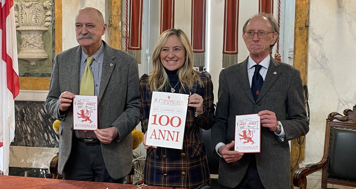 «Un grande augurio all’associazione A Compagna, che taglia il traguardo dei 100 anni caratterizzati da un grande amore per Genova – commenta la consigliera delegata ai Grandi eventi Federica Cavalleri – Un compleanno importante che la città celebra con una serata nel suo teatro più rappresentativo ma anche con un annullo filatelico, sabato 21 nel prestigioso spazio filatelia di Poste Italiane, che verrà omaggiato, come ricordo indelebile della ricorrenza, al pubblico presente in sala al Carlo Felice».