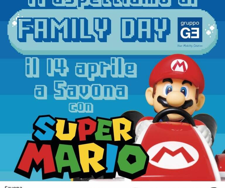 Venerdì 14 aprile dalle 15,30 alle 18, nelle concessionarie Gecar e GT Motor di Savona, si festeggia il Family Day di Gruppo GE tutto a tema Super Mario Bross.
