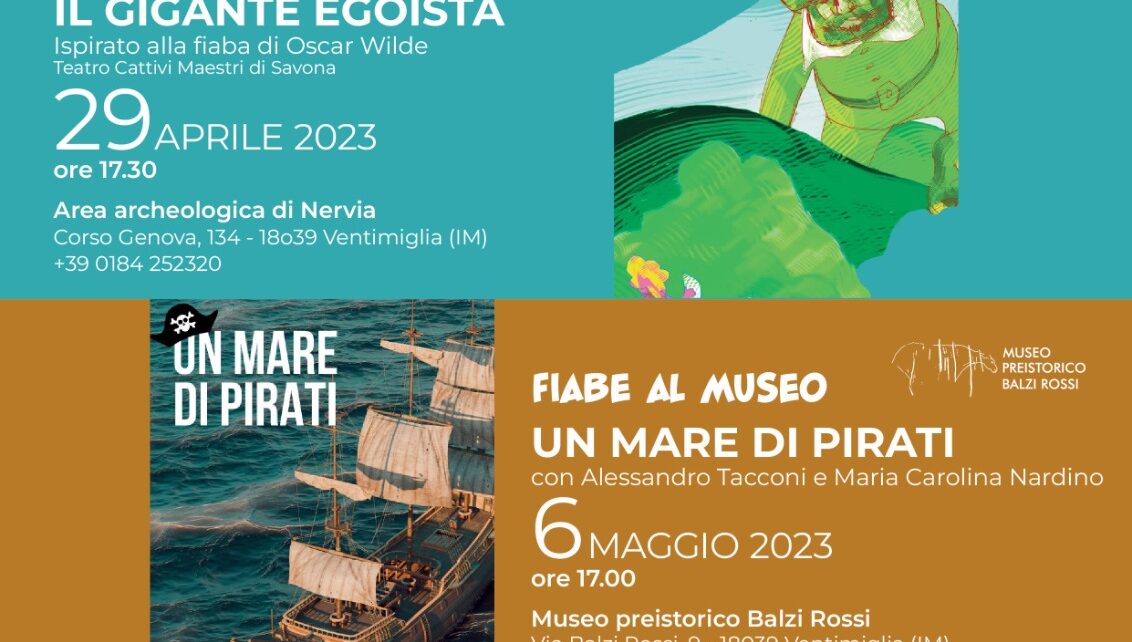 Continua con un altro spettacolo per bambini e famiglie sabato 6 maggio presso il Museo preistorico del Balzi Rossi dove alle 17,00 verrà rappresentato Un mare di pirati, con Alessandro Tacconi e Maria Carolina Nardino, fiaba che evoca la potenza e la suggestione del mare che lambisce il museo.