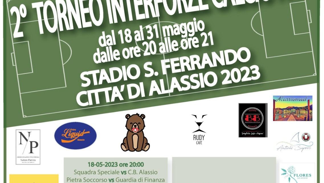 Sei squadre, Aga, Croce Bianca Alassio, Guardia di Finanza, Pietra Soccorso, Squadra Speciale, Vigili del Fuoco sono pronte a sfidarsi per il Torneo Interforze di Alassio. L’evento sportivo si terrà dal 18 al 31 maggio presso lo stadio «Sandro Ferrando» nella città del muretto. Gli incontri si disputeranno sempre la sera, tra le 20 e le 21. La seconda edizione del torneo è dedicata a Gianpaolo Aicardi, il titolare del Baretto scomparso nei mesi scorsi e grande tifoso della Sampdoria.