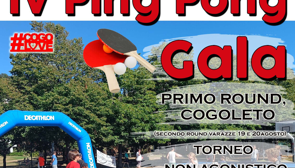 Appuntamento con con il IV Ping Pong Gala sabato 29 luglio dalle 10 del mattino ai Giardini di Villa Nasturzio. Si tratta del primo “turno” che si svolgerà nella cittadina rivierasca mentre il secondo round si terrà a Varazze il 19 e 20 agosto prossimi. L’iniziativa è organizzata dal Tennis Tavolo Don Bosco Varazze con il patrocinio del Comune di Cogoleto.