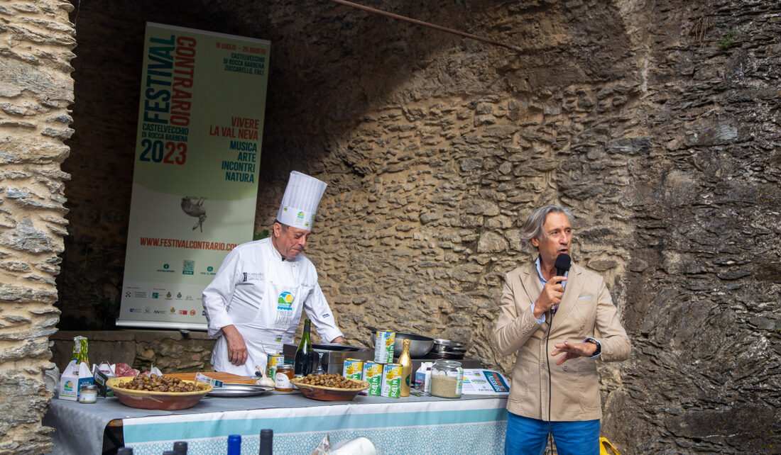 Storie di relazioni, come vuole il FestivAlContrario, che sono continuate negli interventi del Sindaco di Castelvecchio di Rocca Barbena Marino Milani, di Silvio Riolfo Marengo, dell’assessore di Garessio Pierandrea Camelia e del presidente delle Antiche Vie Del Sale Alessandro Navone che hanno ricordato il valore di queste “strade del mare” che, oltre a trasportare al di là delle Alpi Liguri merci e alimenti, univano e mescolavano la cultura gastronomica dei diversi territori: dalla Bagna Cauda alla Cucina Bianca.