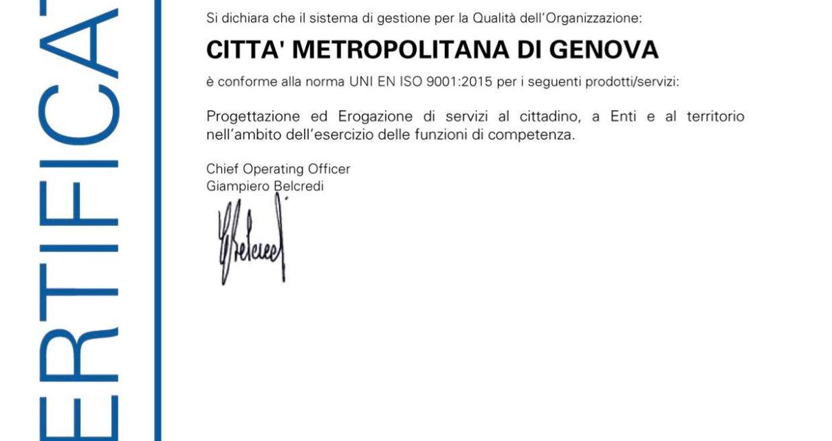 La recente conferma certifica quindi, ai cittadini e alle imprese del nostro territorio, il proseguimento dell’affidabilità della Città Metropolitana di Genova e il nostro impegno per una scelta organizzativa attenta alla prevenzione del reato di corruzione, con una continua attenzione all’imparzialità.