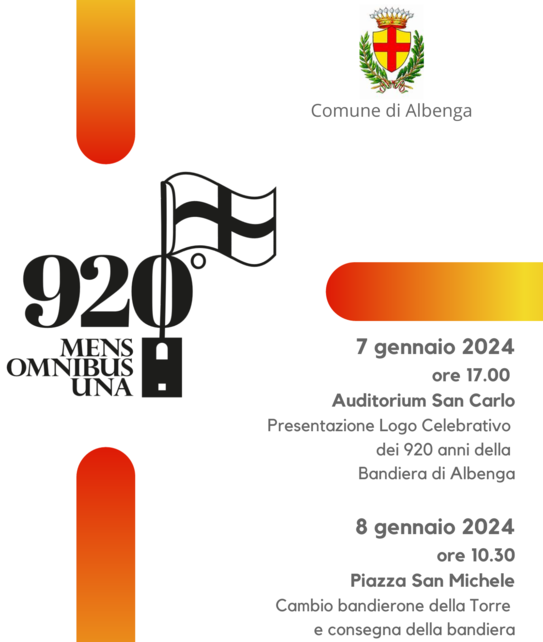 Il 7 gennaio 2024 alle ore 17 all’Auditorium San Carlo verrà presentato il marchio celebrativo e le prime iniziative che apriranno di fatto un calendario che andrà arricchendosi di tutti quegli appuntamenti, eventi ed iniziative che saranno proposti da associazioni del territorio al comitato organizzatore presieduto dal Professor Mario Moscardini. L’evento sarà anche l’occasione per inquadrare storicamente le origini degli albenganesi e della loro bandiera, grazie ad un approfondimento a cura dell’Istituto Internazionale di Studi Liguri.
