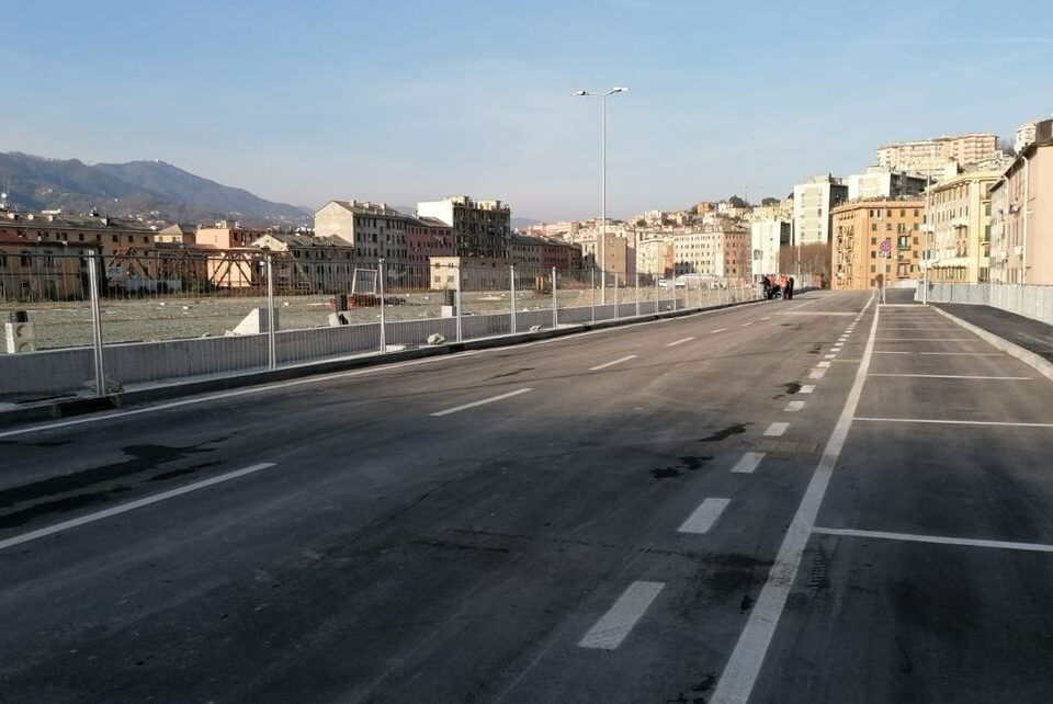 Aperta questo pomeriggio la nuova strada del Campasso. La nuova viabilità si innesta nell’ex area ferroviaria in prossimità dei civici 39 e 41 di via del Campasso e raggiunge la quota del piazzale ferroviario per poi svilupparsi fino ad allacciarsi all’attuale viabilità di via della Pietra-via Mario Bercilli.