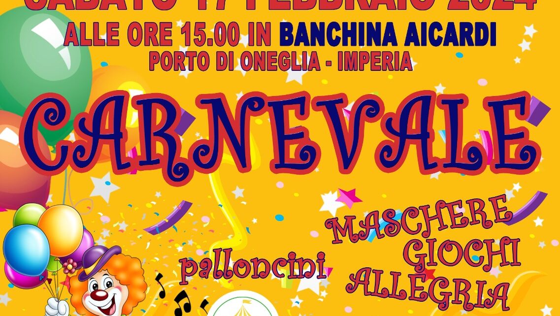 Dopo la forzata interruzione causa il Covid, il Carnevale di San Giovanni ritorna nel 2021 nella nuova location di banchina Aicardi: un invito che oggi il Comitato san Giovanni, grazie anche alla disponibilità offerta dal Comune e Go Imperia ripropone a tutta la cittadinanza, giovanissimi, famiglie e nonni per un pomeriggio sabato 17 febbraio all’insegna del divertimento, allegria, giochi, dolci e l’animazione degli amici Fortunello e Marbella.