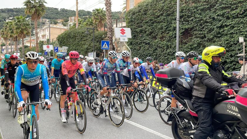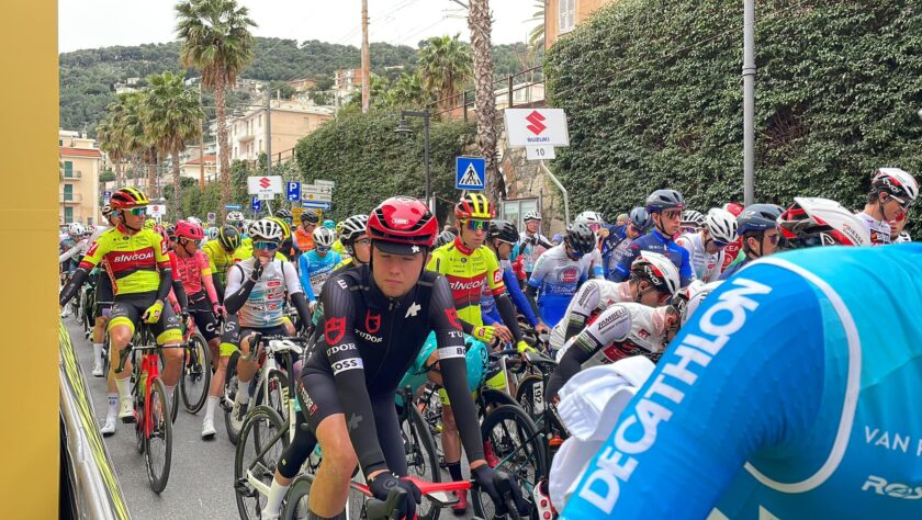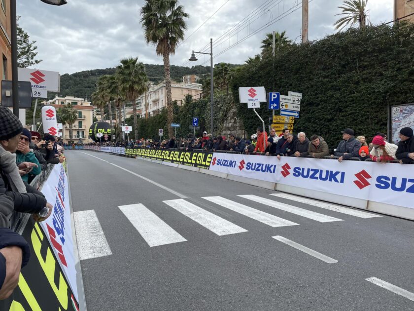 De Pretto e Pinarello non reggono il ritmo dei battistrada, Vendrame fatica ma rientra in discesa, davanti i più brillanti sembrano Christen e Martinez, con quest’ultimo che sulle ultime rampe di Colla Micheri stacca tutti e riesce a involarsi verso il traguardo di Laigueglia con 29″ sugli inseguitori, con Vendrame che la spunto nello sprint ristretto davanti ad Ayuso, rientrato sui battistrada.